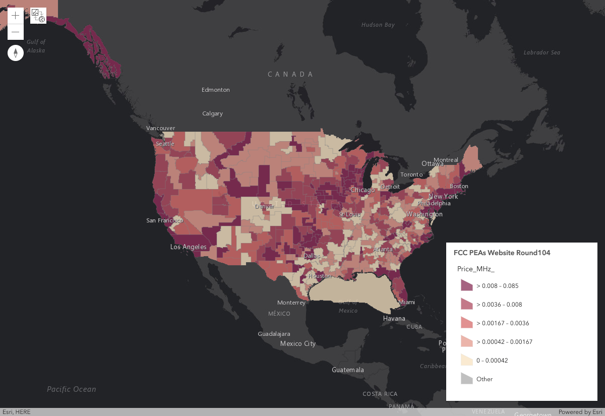 Nationwide Price Per MHz-POP at the end of Round 104: | $0.007110 |