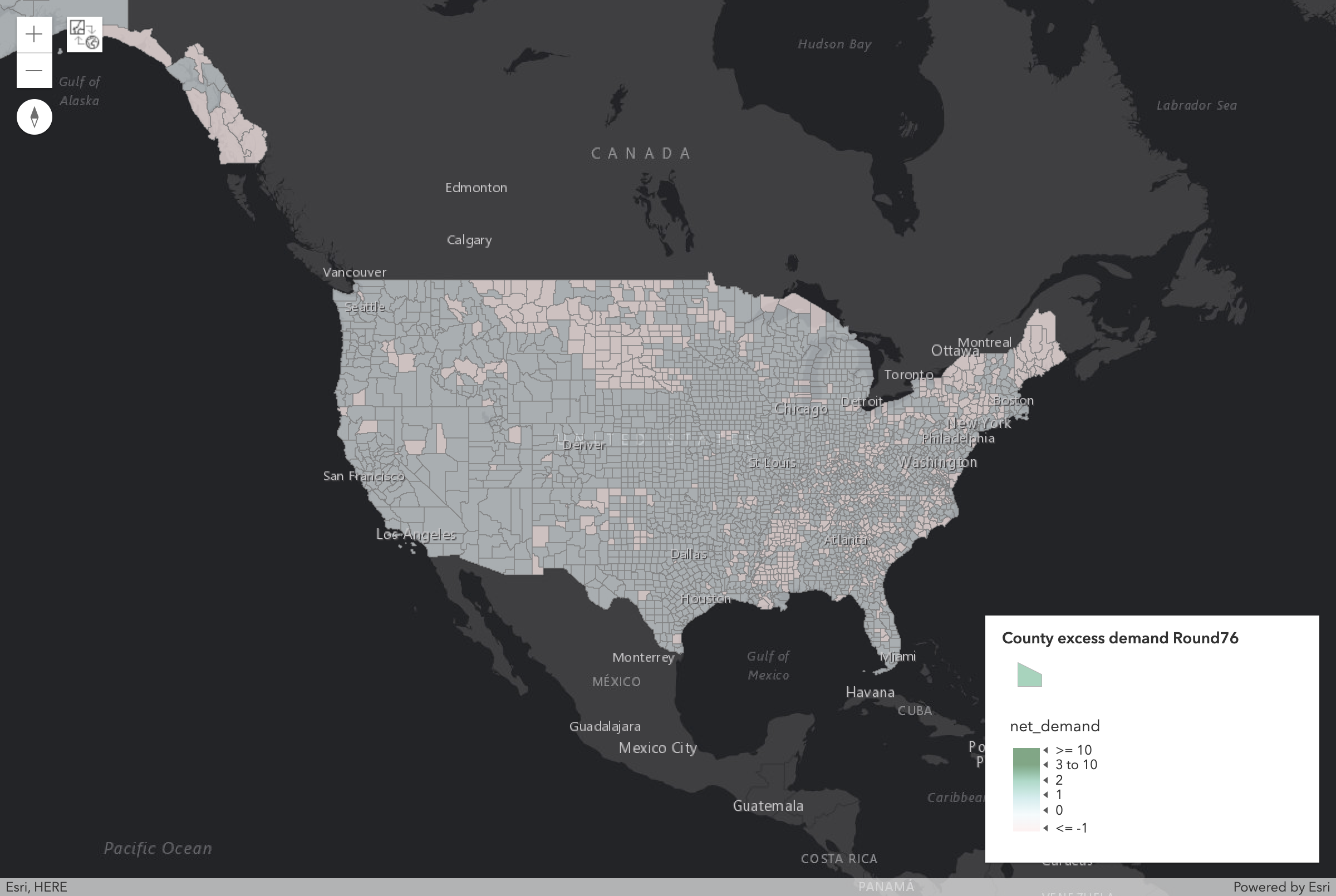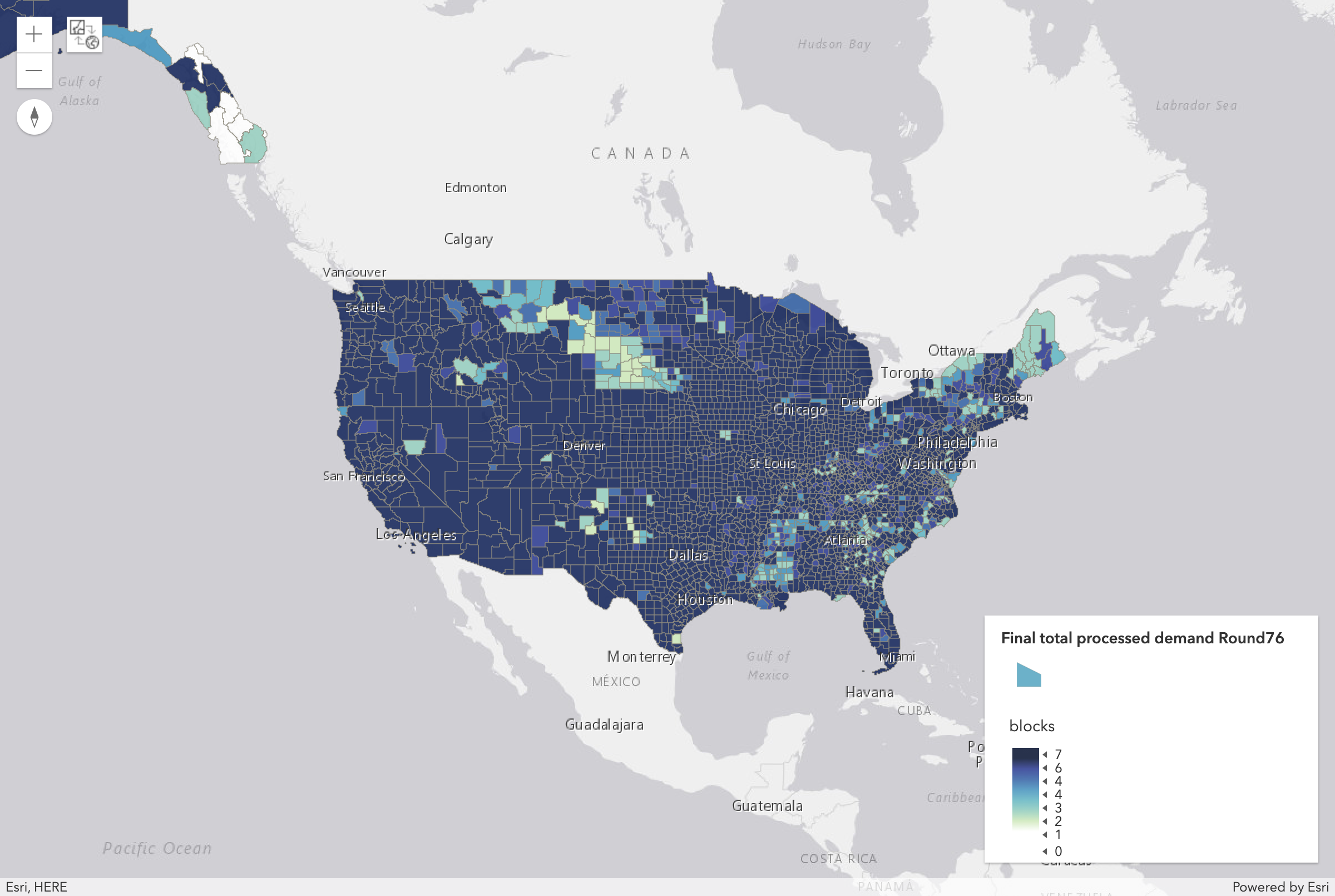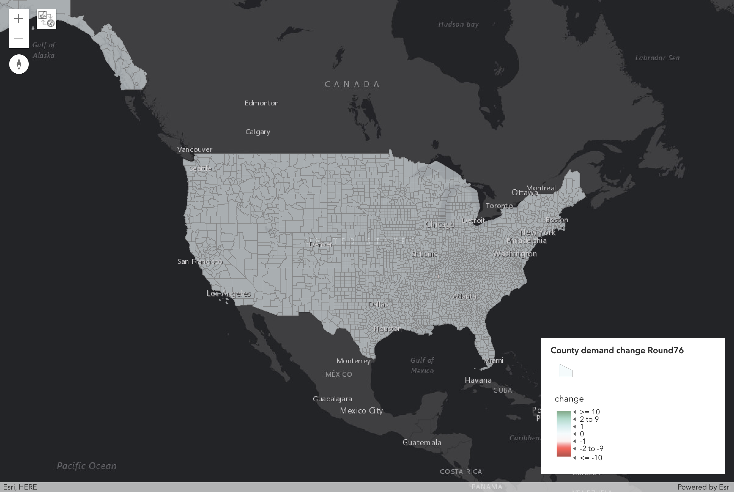 Largest County (by Population) with Demand Change after Round 76: | Benton, TN |