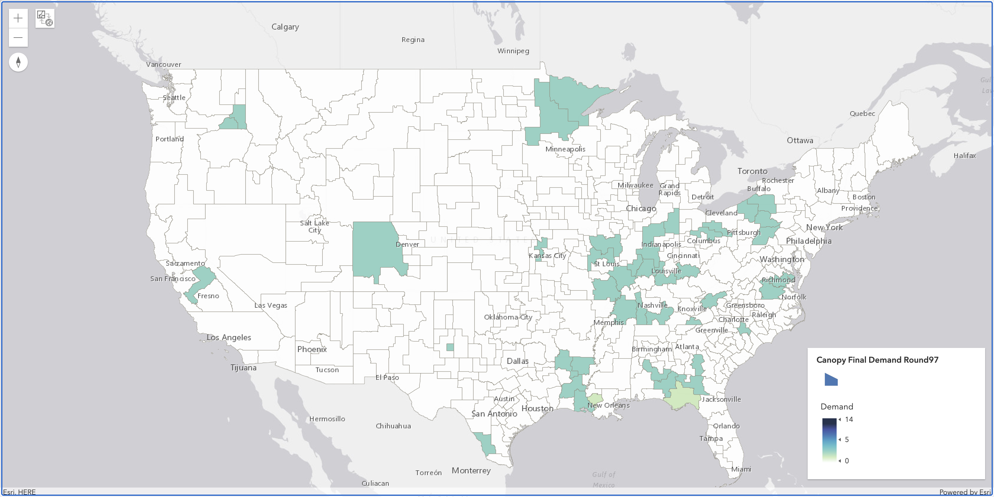 Largest PEA (by Population) with Demand Change after Round 97: | Franklin, NC |