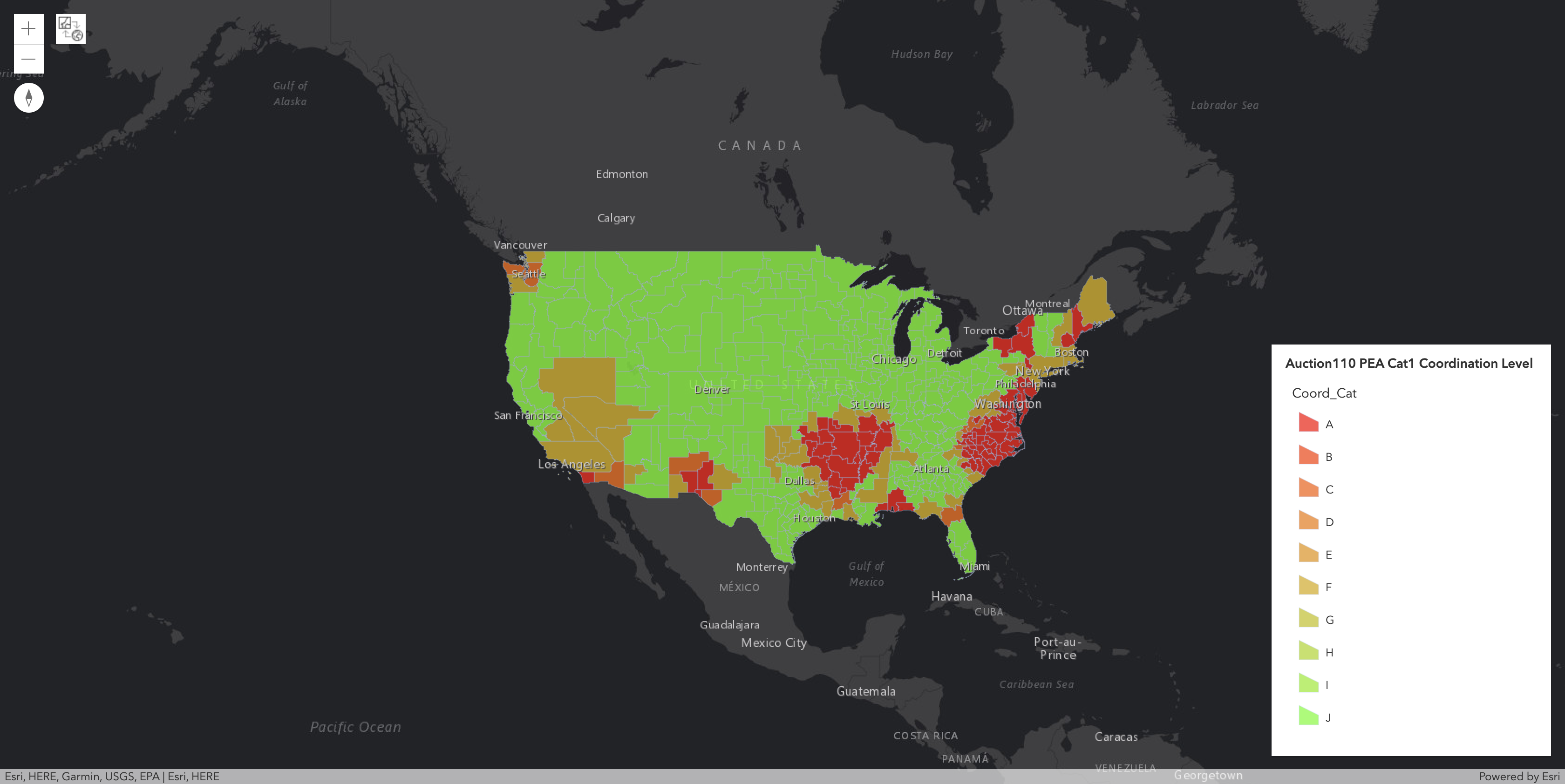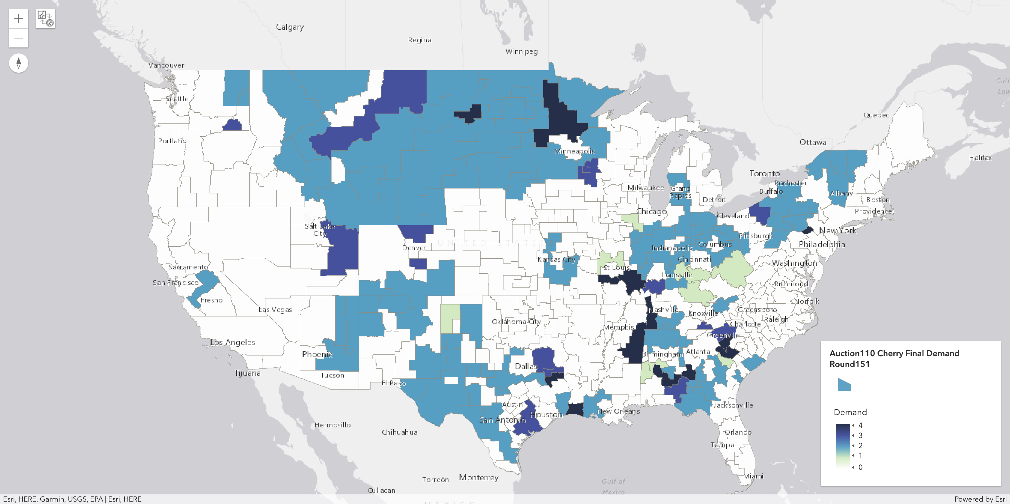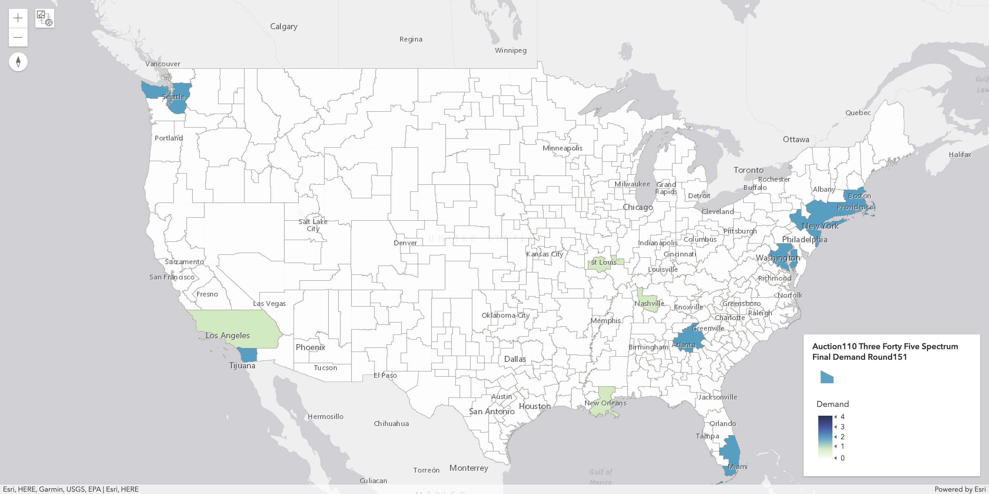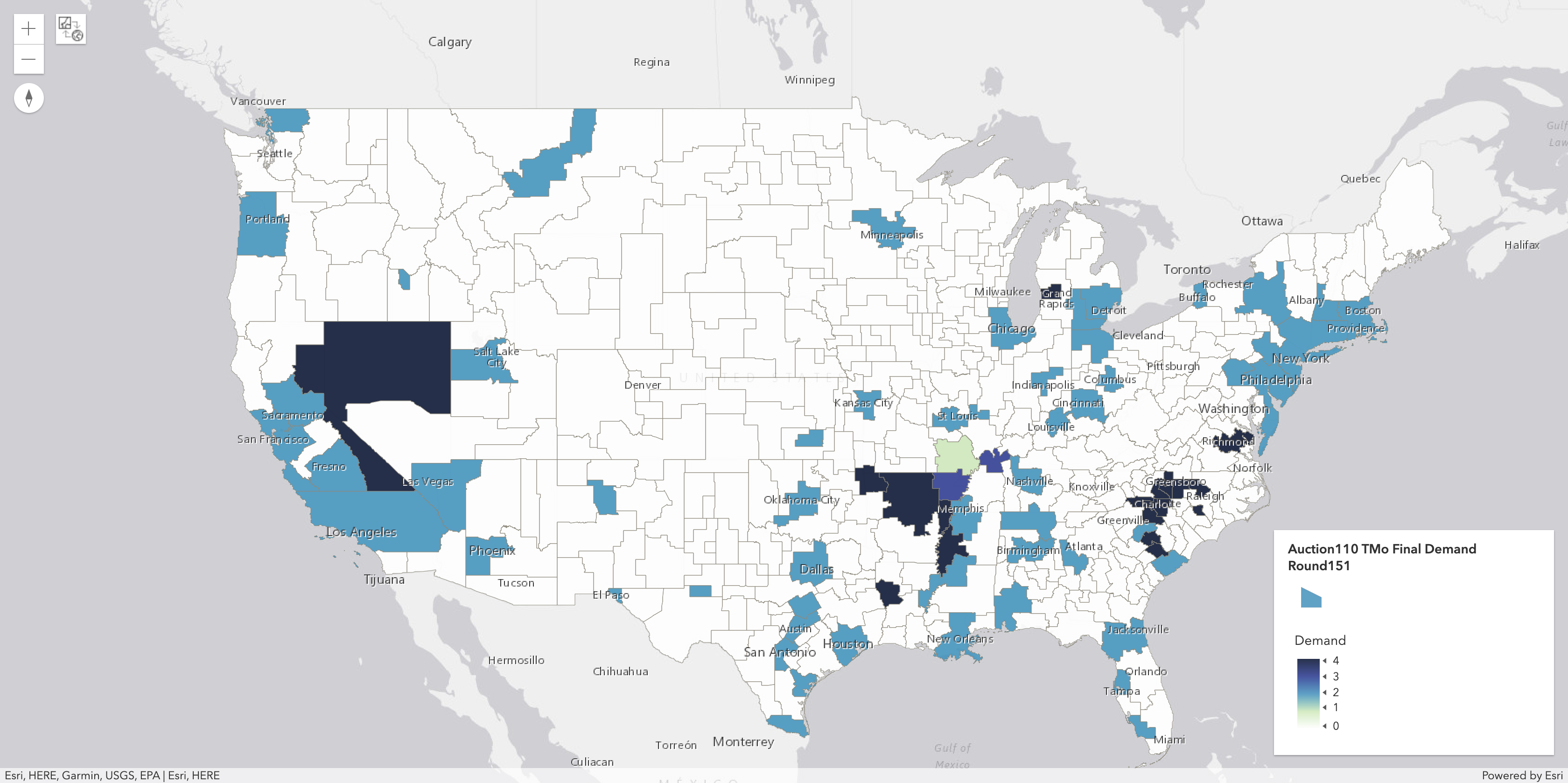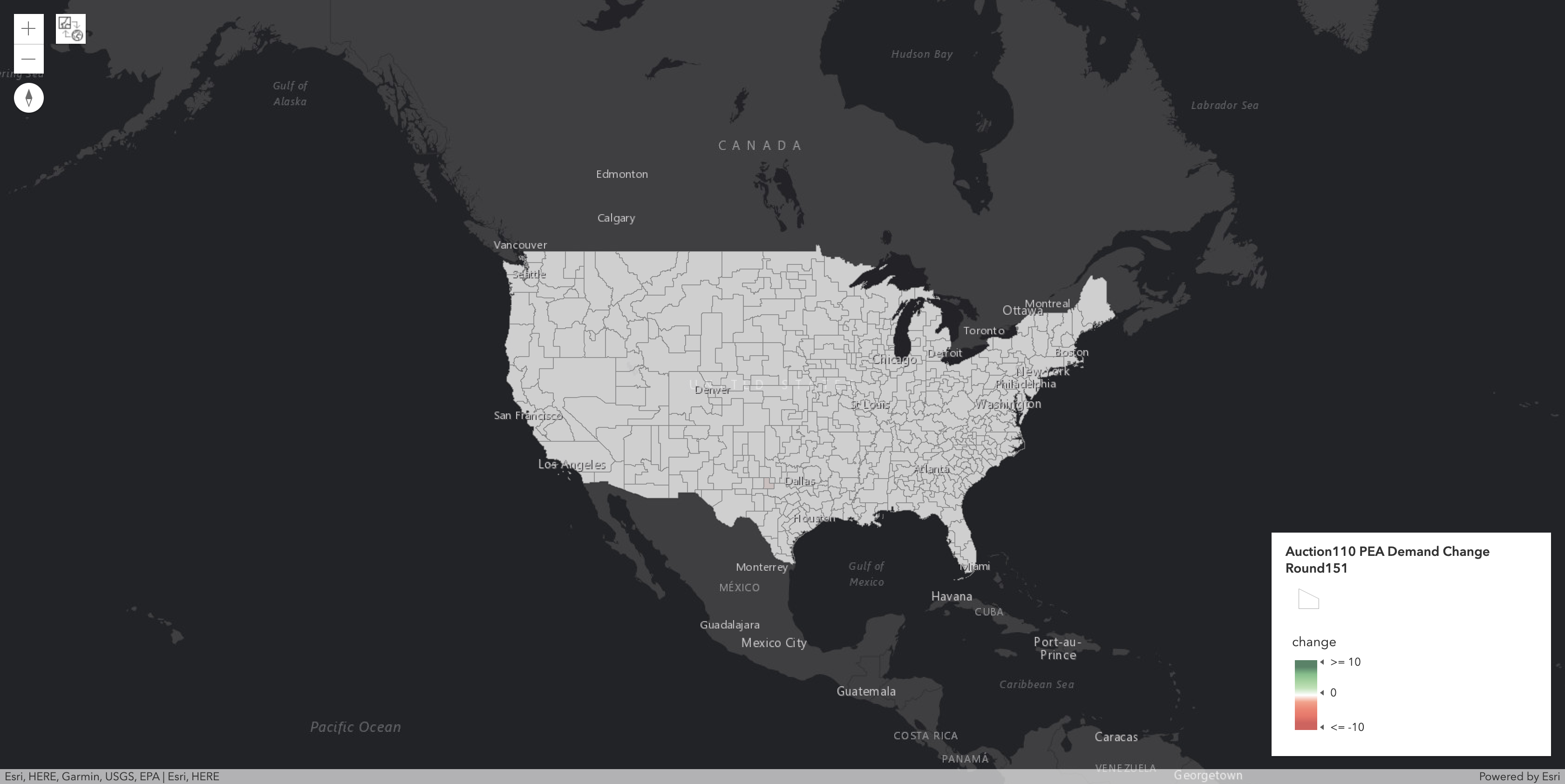 Market Number | Market Name | Category | Population | Population 2020 | Bidding Units | Supply | Aggregate Demand | Excess Demand | Demand Change | Coord % Year 0 | Coord % Year 1 | Coord Class | Posted Price | Gross Proceeds | Price Per MHz POP (for product) | Price Per MHz POP 2020 (for product) | Price Per MHz POP (for PEA) | Reference Market Number | Reference Market Name | Predicted Price (for PEA) | Overprice Ratio (Log Base10) |